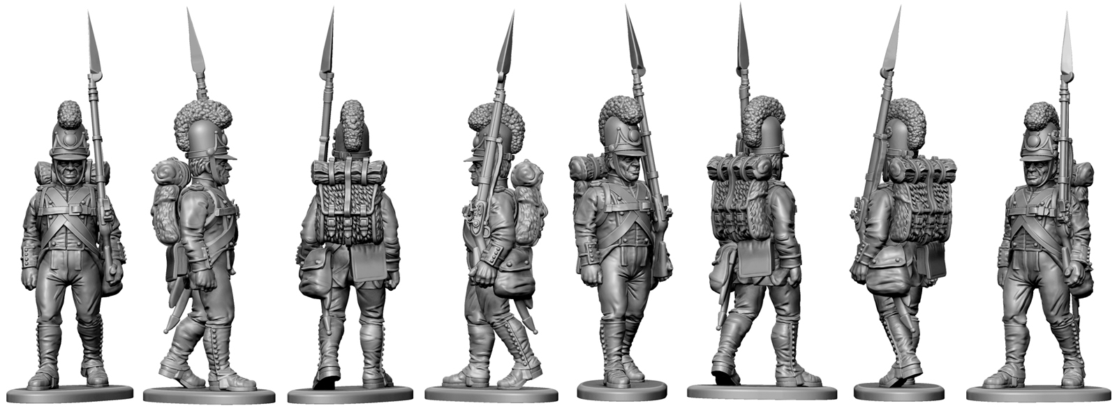I didn't want to use all the Foundry figures otherwise they would all look the same, so I included 3 plastic Perry figures and one Perry metal figure. I also added a scarf in the 4th facing colours to the only marching figure